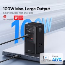 - Fast and Efficient Charging: With up to 100W output, it delivers fast charging for all your devices, including high-power items like laptops and phones.