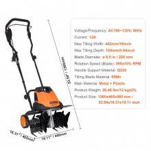 12 Amp Electric Garden Tiller – 18″ Wide, 3.94″ Depth, Steel Tines