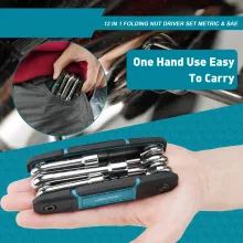 Need a compact and reliable tool that can handle a variety of nut sizes? This 12-in-1 Folding Nut Driver Set is the perfect solution for professionals and DIY enthusiasts alike. Designed for maximum convenience and durability, this tool features both metric and SAE sizes, making it a must-have for anyone working on home projects, furniture assembly, or vehicle repairs.
