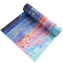 Transform ordinary projects into extraordinary works of art with this stunning set of 12 gold foil washi tapes. Each roll is beautifully designed with starry sky patterns and shimmering accents that add elegance and charm to anything you create. Whether you’re decorating a scrapbook, journaling, or adding flair to gift wrapping, these tapes are the perfect way to express your style with ease.