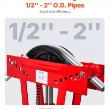 This hydraulic bender comes equipped with six precisely cast dies in sizes ranging from 1/2 in to 2 in, allowing you to handle a wide range of pipe diameters with ease. Its adjustable roller levels and sturdy four-leg support system offer dependable stability, even under continuous operation. A smooth hydraulic control system ensures effortless lifting and lowering, while the ergonomic handle delivers a comfortable grip for better control.