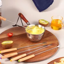 • Heat-Resistant Wood Handles: Stay cool and comfortable even during high-heat fondue sessions.