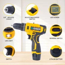 12V Cordless Electric Drill with LCD Screen, 2-Speed Impact Drill Set
