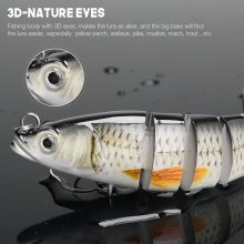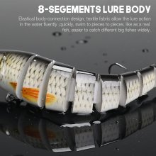 • Multi-jointed body: Connected by flexible fabric, each segment creates a realistic swimming action that triggers strikes from cautious fish.