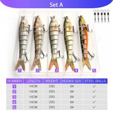 This set is designed for anglers who want to stay ahead on the water by using lures that imitate real baitfish movements at any retrieval speed. The jointed segments create a lifelike swimming motion, unlike rigid crankbaits, making them irresistible to predatory fish. The built-in gravity ball enhances both cast distance and underwater noise, increasing your chances of attracting big strikes. Plus, the sturdy hooks and durable construction mean you can trust these lures to perform trip after trip.