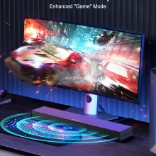 - Enhanced Gaming Mode: Optimized for gaming, the soundbar’s gaming mode offers crisp and clear audio, helping you to fully immerse in your virtual environment.