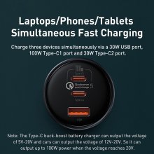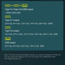- Simultaneous Charging: Dual Type-C and USB ports deliver 100W, 30W, and 30W outputs, perfect for charging laptops, tablets, and phones at the same time.