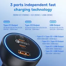 - Three charging ports: 2 USB-C ports and 1 USB-A port