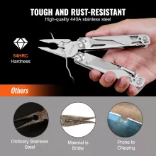 - High-Quality Stainless Steel Construction – Made from 440A stainless steel with a hardness rating of 54HRC, this tool resists corrosion, stays sharp, and withstands rugged conditions.