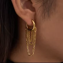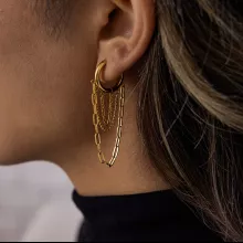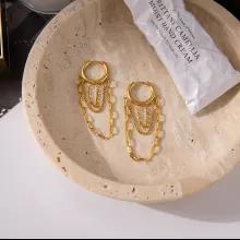 Discover the perfect blend of modern style and timeless elegance with these stunning 18K gold PVD plated geometric tassel earrings. Designed for women who love effortless sophistication, these earrings bring a graceful, eye-catching movement to every look. Their lightweight stainless steel structure makes them comfortable to wear all day, while the long chain tassels add a touch of charm and confidence.
