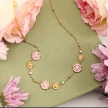 Crafted from durable stainless steel and finished with 18K PVD gold plating, this necklace is built to last through years of wear without fading or losing its glow. The charming pink daisy pendant adds a touch of romance and whimsy, making it ideal for both casual days and more polished moments. Plus, its waterproof and scratch-resistant design means you can wear it anytime, anywhere, with confidence and ease.
