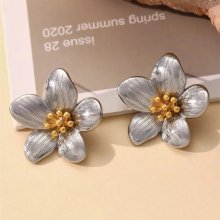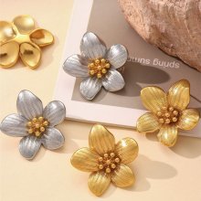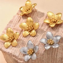 18K Gold Plated Stainless Steel Flower Stud Earrings for Women