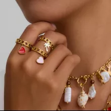 Make a statement with effortless charm. This 18K Gold-Plated Stainless Steel Open Ring features a delicate heart and coconut tree pendant—perfect for expressing your bold, sunny-side personality. With its playful yet elegant design, it’s more than just jewelry; it’s a conversation starter. Whether you’re dressing up for brunch, heading to the beach, or adding flair to your everyday look, this ring brings a stylish twist to your fingers.