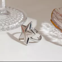 - Design: Smooth convex pentagram, open ring for adjustable fit