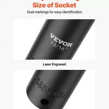 • 19 essential deep sockets from 3/8″ to 1-1/2″ for versatile use