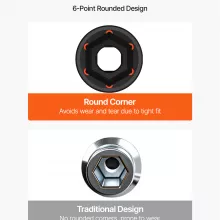 • Six-point high-torque grip for secure contact and reduced bolt damage