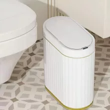 Experience a cleaner, smarter way to manage waste with this 2 Gallon Slim Motion Sensor Trash Can. Designed for modern homes and busy lifestyles, this sleek trash can features a hands-free, motion-activated lid and a chic white finish with gold trim that adds sophistication to any space. From the bathroom to the kitchen or office, it brings together hygiene, technology, and style—all in a compact footprint.