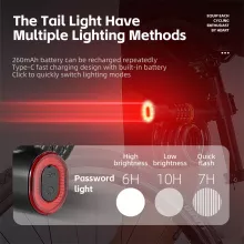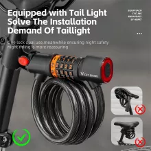 The lock includes a tough steel cable wrapped in PVC for durability, a bright taillight powered by a 260mAh battery, and a simple 5-digit password system that gives you over 100,000 possible combinations. At approximately 4 ft in length and 0.47 in in thickness, it balances strength with flexibility, making it ideal for mountain bikes, road bikes, scooters, and more. Installation is quick and effortless, so you can start using it right away.