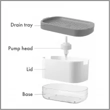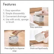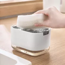 - 2-in-1 Functionality: Combines a soap dispenser and sponge holder in one compact unit to save space and keep your sink area neat.