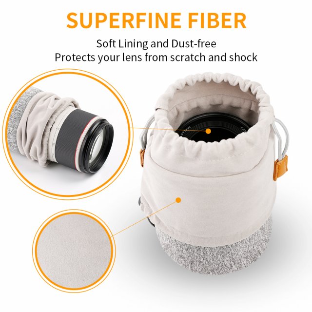 Made from durable waterproof neoprene on the outside and lined with soft flocking on the inside, this pouch offers a protective cushion that prevents scratches and absorbs shocks. The well-padded sponge bottom adds extra reinforcement, protecting your lens from accidental drops or pressure while on the go.