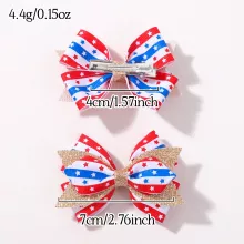 Let your little one shine bright this 4th of July with this charming 2-piece set of glitter star bow hair clips. Designed for girls who love to accessorize with a touch of sparkle, these festive hairpins are the perfect finishing touch to any patriotic outfit. Whether it’s for a family BBQ, school celebration, parade, or fireworks night, these bowknot hair clips add flair and fun to any hairstyle. The vibrant red, white, and blue color palette paired with star prints and shimmering glitter captures the spirit of Independence Day like no other accessory.