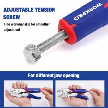 - Adjustable locking mechanism keeps a firm hold on workpieces of different sizes.