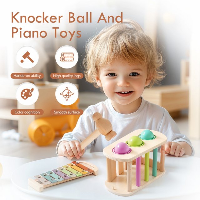 Introduce your little one to the joy of music and play with this charming 2-piece wooden musical toy set. Designed specifically for babies aged 6 to 12 months, this set features a colorful percussion xylophone and an engaging mole game that bring sound, rhythm, and fun together. Crafted from smooth, natural wood, these toys invite tiny hands to explore and create, nurturing early creativity and coordination.