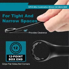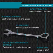 This mini combination wrench set is perfect for those who need reliable, space-saving tools for a variety of tasks. It is particularly useful for:
