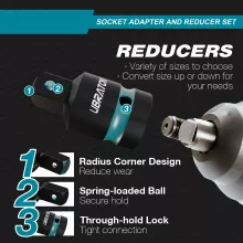 This impact socket adapter and reducer set is best used in scenarios where flexibility, strength, and fast adaptability are a must—whether you’re repairing engines, building structures, or fine-tuning machinery. What makes it special is the precision design paired with pro-level durability, giving you everything you need in one compact kit. Upgrade your toolkit today and take on any task with confidence and control.