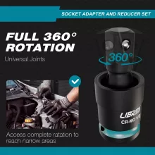 Featuring 11 hex shank socket adapters, 6 drive reducers, and 3 universal joints, this set lets you effortlessly switch between 1/4″, 3/8″, and 1/2″ drive tools. The spring-loaded detent balls ensure secure connections, while chamfered edges make it easy to insert and remove tools quickly. The 360-degree swivel universal joints let you access tight, awkward spaces with ease—perfect for automotive work, home improvement, construction, and machinery maintenance.