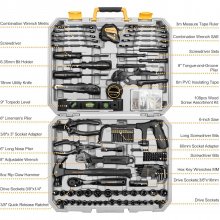 No more searching for the right tool. This complete set is neatly organized in a compact, portable case measuring 17.12″ x 12.99″ x 3.5″ and weighing just 14.02 lb. With combination spanners, screwdrivers, adjustable wrench, drive sockets, pliers, bits, and more, every essential is within reach and ready when you are.