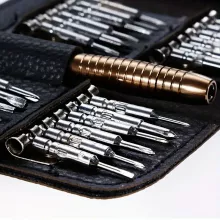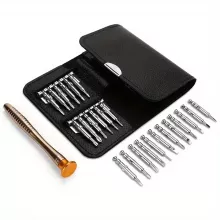 This precision screwdriver set has been nothing short of fantastic! With a total of 25 pieces including an array of precision bits and one comfortable handle this kit provides solutions for various screws sizes types (80 words). Made from durable chrome-vanadium steel each piece resists wear providing lasting strength over time plus they're all neatly packed into a compact portable case that fits perfectly in your pocket or toolbox (95 words).