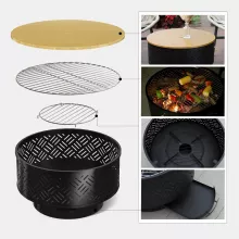 - Complete Set: Includes grill, lid, fire poker, rain cover, and log grate.