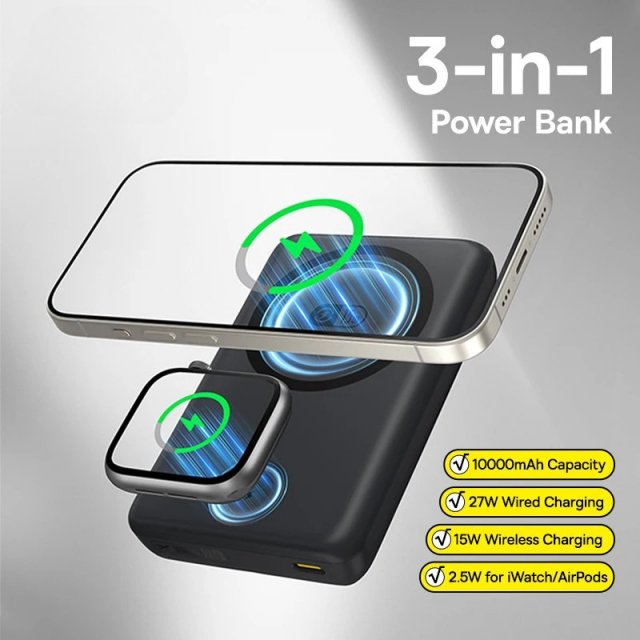 Keep your devices charged and ready for anything with this sleek and powerful 27W Magnetic Power Bank. Offering a seamless charging experience for both your iPhone and Apple Watch, this compact external battery combines cutting-edge technology with a practical design that fits your everyday needs.
