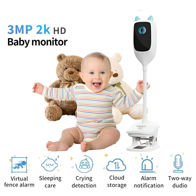 2K WiFi Baby Monitor with Crying Detection, Night Vision & 360° Rotation