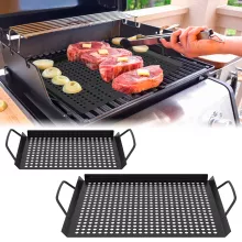 Elevate your BBQ game with this versatile 2-piece set of sturdy perforated grilling pans. Designed for grilling fish, meat, vegetables, and more, these pans allow heat and smoke to circulate freely for perfectly cooked meals every time. Whether you’re camping, hosting a backyard party, or enjoying a weekend cookout, these grilling baskets will make your outdoor cooking effortless and delicious.