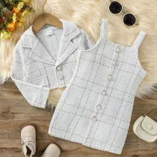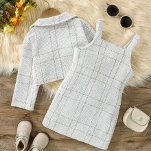Dress your little girl in cozy elegance with this 2-piece fall and winter outfit set. Perfect for ages 1 to 6 years, this adorable combo includes a long-sleeve plaid jacket and a matching suspender dress that’s designed to make her look stylish while keeping her warm. Whether it’s for a family gathering, outdoor stroll, or a fun party, this outfit ensures she shines with charm and comfort all day long.