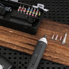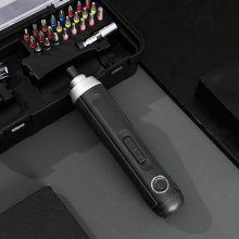 This screwdriver is special because it combines perfectly balanced power with exceptional convenience. The 3.6V motor provides enough torque for most household tasks while remaining lightweight and easy to control. What makes it truly special is the complete ready-to-work package that includes 24 most-needed bits and convenient USB-C charging. The four-speed gear control lets you match power to the task, while the dual LED lights illuminate your work area perfectly. The magnetic chuck keeps bits securely in place, and the battery indicator eliminates guessing about charge status. It’s this combination of thoughtful features, appropriate power, and complete accessibility that makes it exceptional.