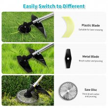 Whether you’re maintaining a small front yard or tackling dense brush in your backyard, this cordless tool adapts to your task. Use the included alloy saw blade for tougher branches, the straight blade for precision lawn work, or the trimmer head for general grass trimming. It’s perfect for spring cleanups, summer lawn care, or autumn leaf removal and edging.