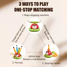 - 3-in-1 Functionality: Combines rope skipping, ring toss, and rocket launch into one compact toy