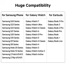 - Universal Compatibility: Works with a wide range of Samsung Galaxy phones, Galaxy Watches, and Galaxy Buds.