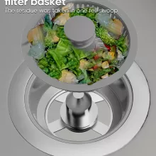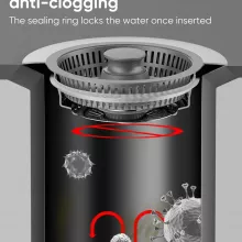 - Anti-clog technology: Prevents messy backups by trapping debris