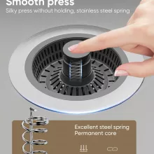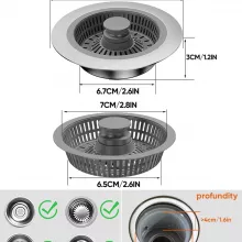 This versatile sink strainer combines three essential functions in one durable unit: it acts as a mesh filter, a waste catcher, and a stopper. The fine mesh captures food scraps, hair, and other debris, while the pop-up design lets you seal the drain when needed—ideal for soaking dishes or filling the sink. It fits most standard drain holes, making it a practical upgrade for any kitchen, bathroom, or laundry sink.
