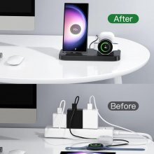 Perfectly compatible with Samsung S25, S24, S23 Ultra, S22, S21, S20, and Galaxy Watch series including Watch 5, 4, 3, and Active 2, this charging hub is built to simplify your daily routine. Featuring a stable Type-C input and quick charge capabilities, it delivers fast, safe, and intelligent power distribution to each device—so you never have to choose which to charge first.