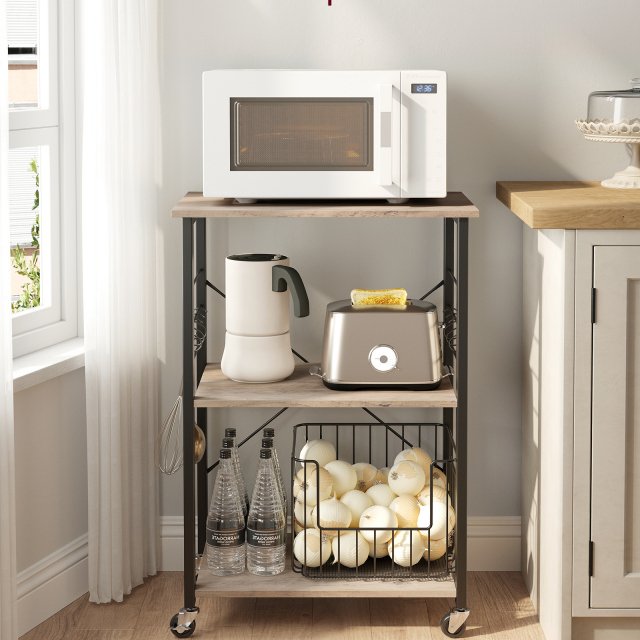 Need a microwave shelf or a space for your mini oven? This cart does it all, offering plenty of room while keeping everything within reach. It’s versatile, durable, and perfect for organizing your kitchen essentials in a stylish way.