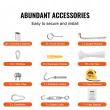 - Complete Installation Kit: Includes sleeves, thimbles, hooks, carabiners, cable clips, screw locks, and tools for a smooth setup.