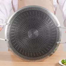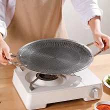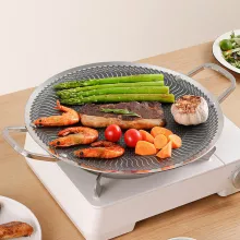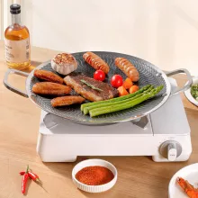 Enjoy authentic Korean BBQ flavors with this 316 stainless steel grill pan, designed specifically for grilling bulgogi, pork belly, ribs, pancakes, and more. Its round shape and unique honeycomb and fish scale pattern deliver even heat distribution and a non-stick surface, ensuring your food cooks evenly without sticking. The double ear handles offer easy lifting and safe handling, whether you’re grilling indoors or out.