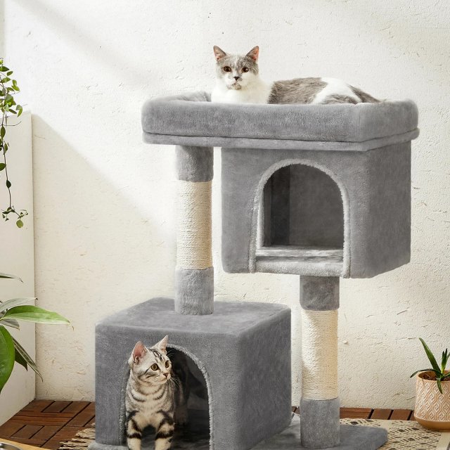 Whether you have one large cat or a pair of smaller ones, this cat tree has enough space to accommodate their different needs. The large perch provides ample room for a single large cat to sprawl out, or for two smaller cats to snuggle together. The two cat caves offer comfortable spots to hide, sleep, or take a break, making it the perfect home within your home for your feline companions.