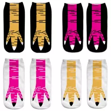 Made from high-quality polyester, these socks are designed for maximum comfort and durability. The soft material feels gentle against the skin, while the breathable and moisture-absorbing properties keep your feet feeling fresh all day long. With their eye-catching chicken claw pattern, they add a unique touch to any outfit, making them perfect for both casual and fun-themed occasions.