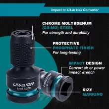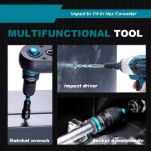 - Socket to Driver Converter: Easily transforms square drive tools into hex bit drivers.